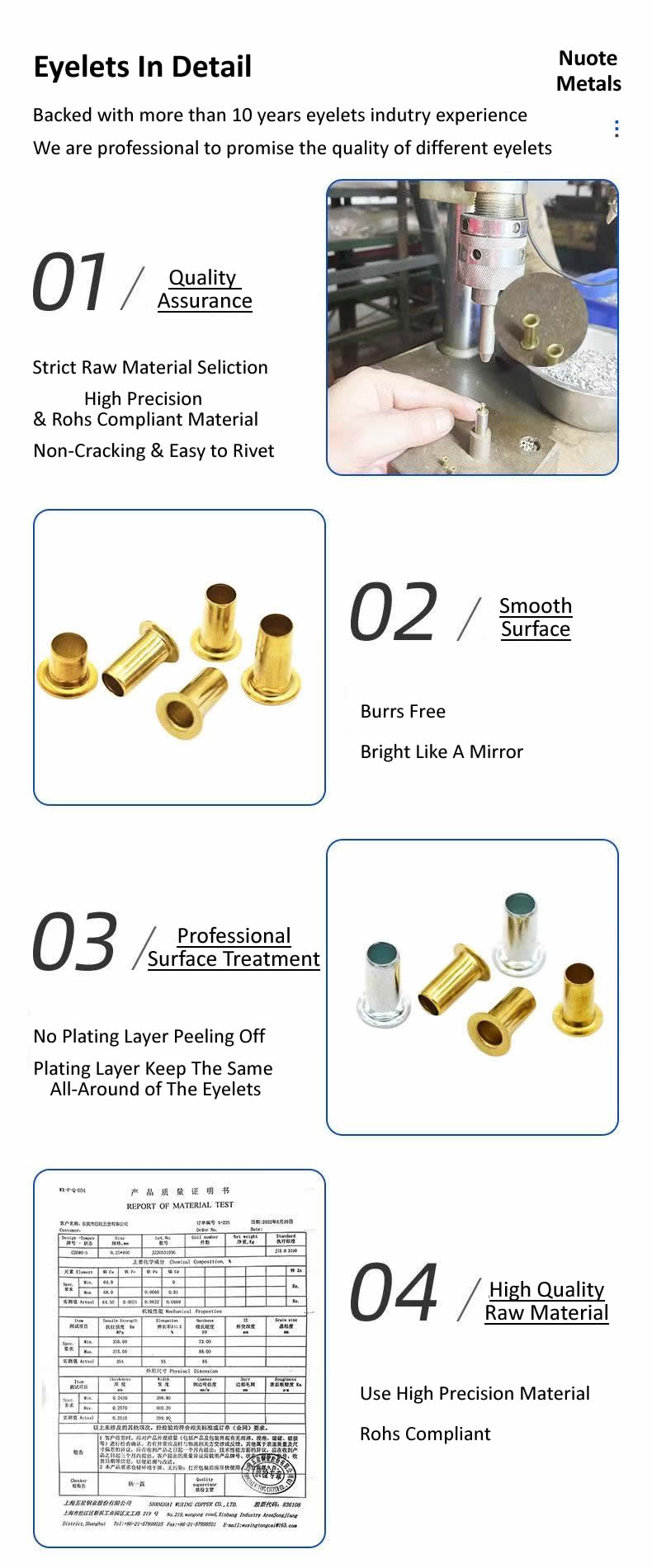 When selecting an eyelet for fabric, material choice directly affects installation success and product lifespan. Here is a comparison based on Nuote Metals field data: