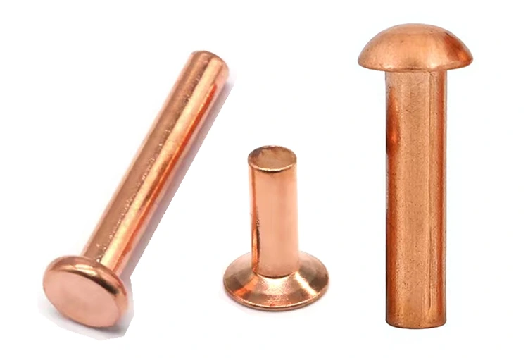 The purity of copper rivets generally refers to their copper content. Generally speaking, copper rivets are relatively pure, with copper contents exceeding 90%. However, the specific purity value is also affected by factors such as the production process, raw material quality, and product demand. In specialized applications, such as aerospace and precision machinery, the purity requirements for copper rivets are more stringent and may require higher purity standards.