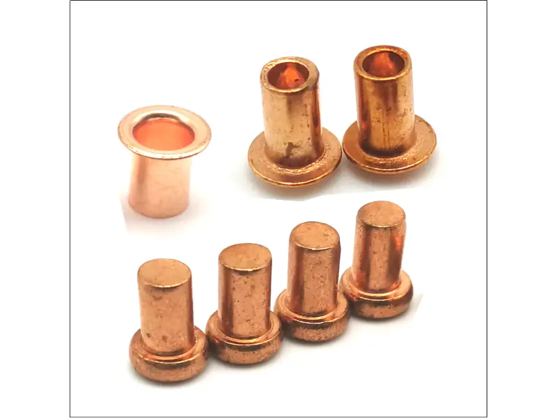 They come in all the standard types. You can get solid copper rivets, which are tough and used where you need a lot of strength in the joint, like in heavy canvas or copper roofing. There are semi-tubular copper rivets , which are faster to set and great for leather goods or lighter assemblies. And there are full tubular copper rivets which act like bushings or pivots. The head styles vary too—round head, flat head, countersunk—depending on whether you want the rivet to show or sit flush.