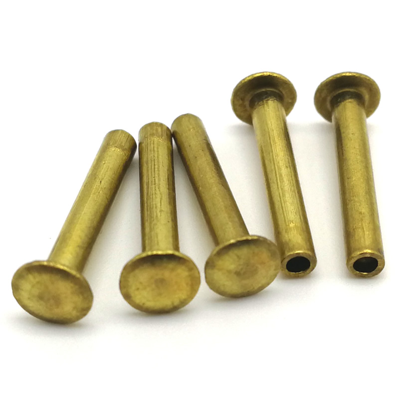 The "half tubular" part is key. These brass half tubular rivets have a solid shank for most of their length, but the end is formed into a short, hollow tube. This design lets them set firmly with a press or a hammer, flaring that hollow end out to grip the material securely. They're stronger and more permanent than many other types of rivets, perfect for handles, straps, or anywhere you need a really tough joint. And because they're brass, they won't rust and keep that warm, polished look over time.