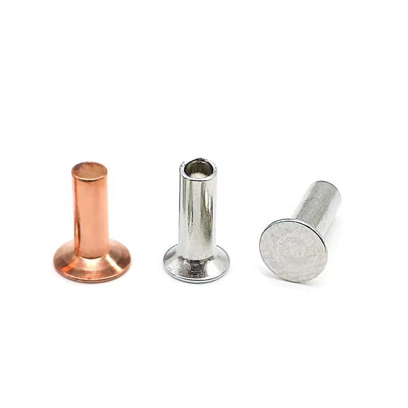 A copper countersunk head rivet is shaped to fit into a cone-shaped hole. Once set, the top sits level with the surface—no bump, no edge, just flat. This makes it a go-to for metal roofing, boat decks, outdoor electrical boxes, and architectural metalwork. If water, salt, or time is a factor, copper handles it well.