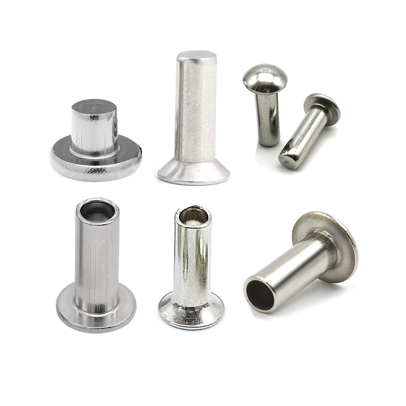 We make metal rivets in steel, aluminum, brass, copper, and stainless steel. Pick what fits your job: strong, light, rust-proof, or good-looking. Whether you need a tiny rivet for electronics or a heavy one for steel beams, we can supply it.