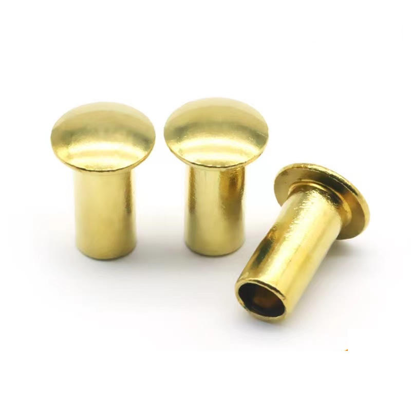 A brass round head rivet has that classic dome shape—the one everyone pictures when they hear the word rivet. It sits above the material, catching light and shadow. You'll find them on marine hardware, leather goods, furniture, instrument panels, and restoration work. Places where the rivet shouldn't hide. Places where it should announce that something was put together by hand, with care.