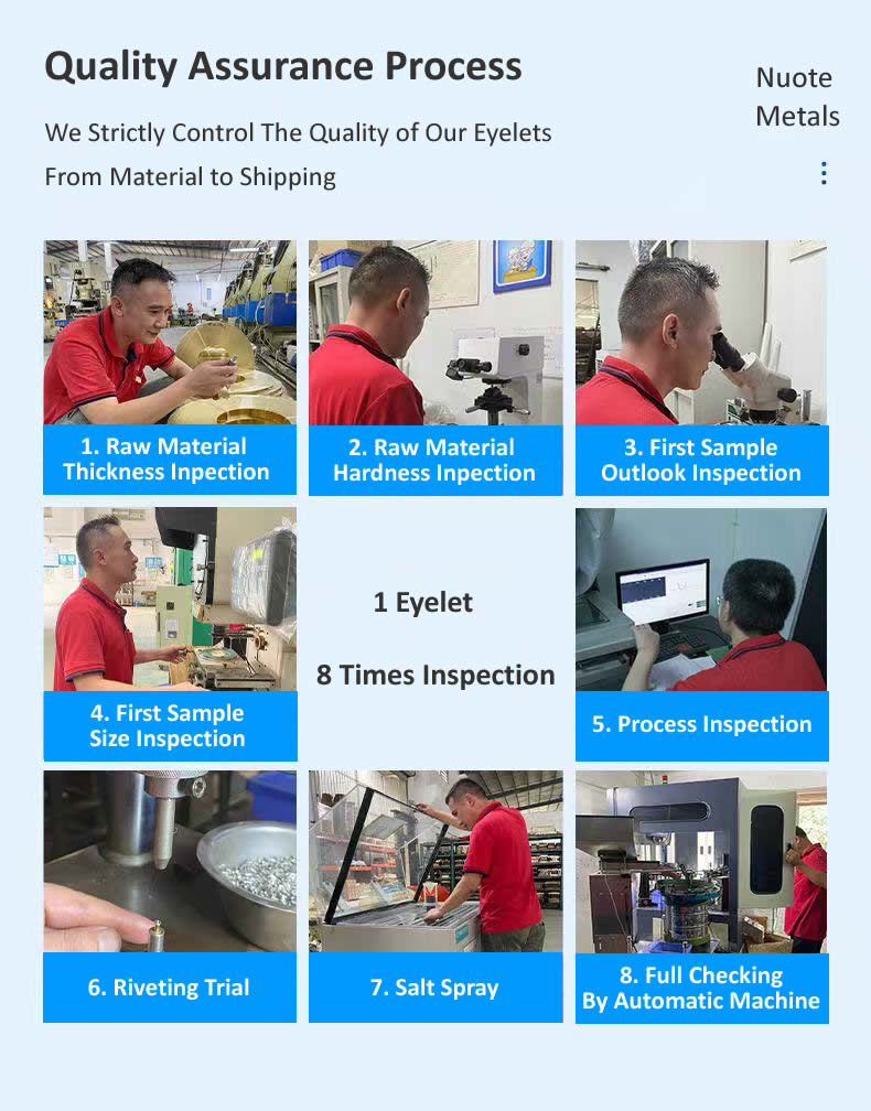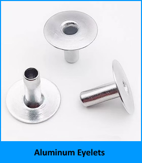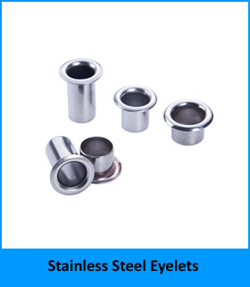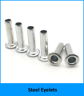 We make brass eyelets, stainless steel eyelets and steel eyelets, aluminum eyelets, copper eyelets and special eyelets with different sizes.